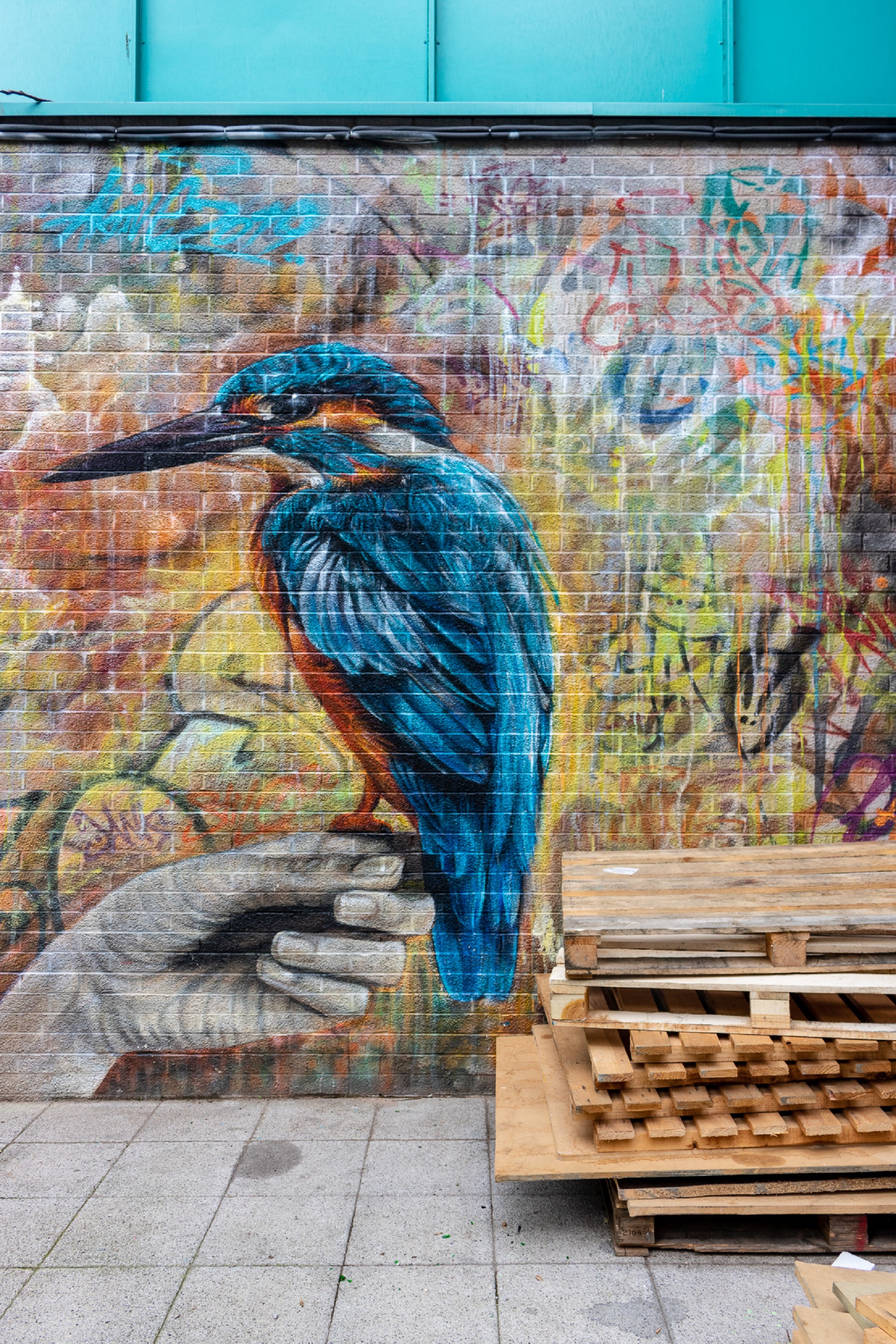 Kingfisher – This is a portion of a large scale artwork on Nelson Street, Bristol, by Nick Harvey (aka Kin-Dose), a Bristol-based street artist, specialising in large scale murals. The stunning realism of this work is simply breathtaking and the colourful Kingfisher stands out in striking contrast to the grey concrete and bricks. Finding this wild and beautiful creature in the context of a city wall speaks to me of our intrinsic longing to connect with nature.