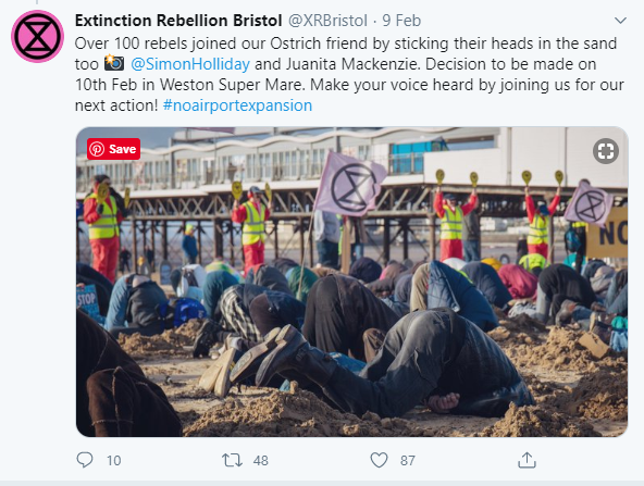After attending the Extinction Rebellion Protests on 8th May at Weston-super-Mare, I was excited to find out that my image of climate protesters with their heads in the sand was shared by Extinction Rebellion Bristol on their official twitter feed.